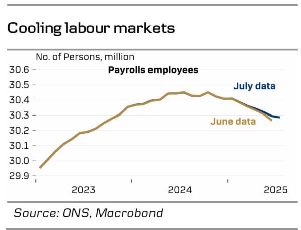 BoE call. We expect the BoE to cut rates again in November, leaving the Bank Rate at 3.75% by YE2025, but we acknowledge that inflation will need to cool in August-September data for that to happen and see a substantial risk the next rate cut could be postponed. With the economy holding up better than expected and inflation still quite sticky above target, we revise our expectations for the bank rate next year and now expect one more cut in February leaving the Bank Rate at 3.50%.