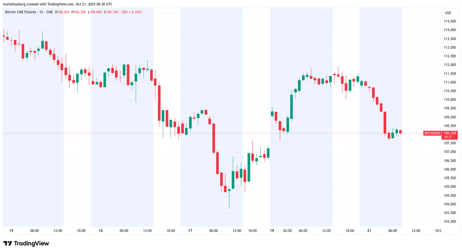 Filling the gap on this occasion would mean a return to around $107,390. During last week’s market rout, Bitcoin futures put in a low at around $103,750.