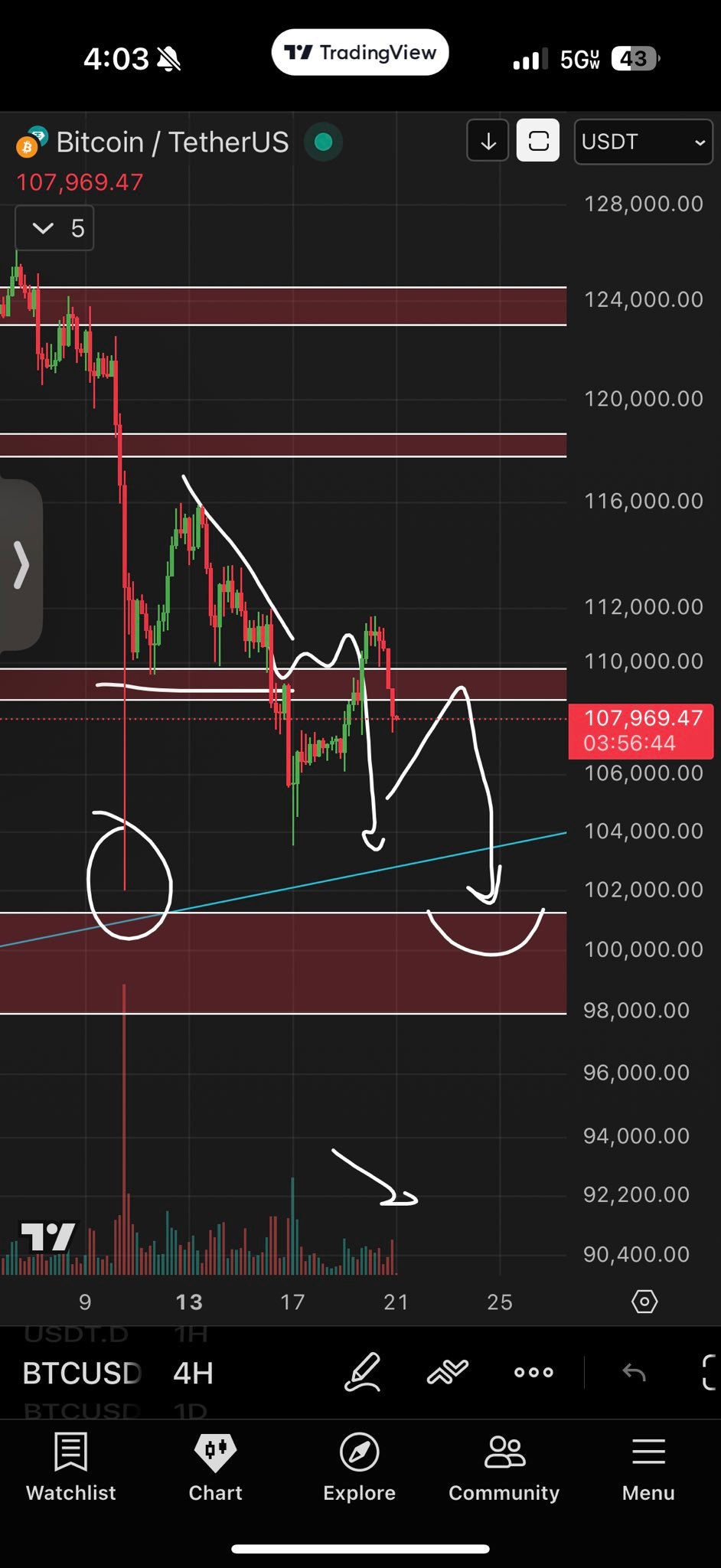 Crypto investor and entrepreneur Ted Pillows also saw $100,000 coming into play next if BTC price fails to establish a floor.
