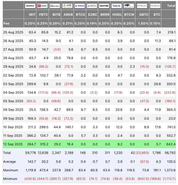 The US spot Bitcoin exchange-traded funds (ETFs) saw net inflows of over $2.3 billion in the five days through Sept. 12, per data from UK investment firm Farside Investors.