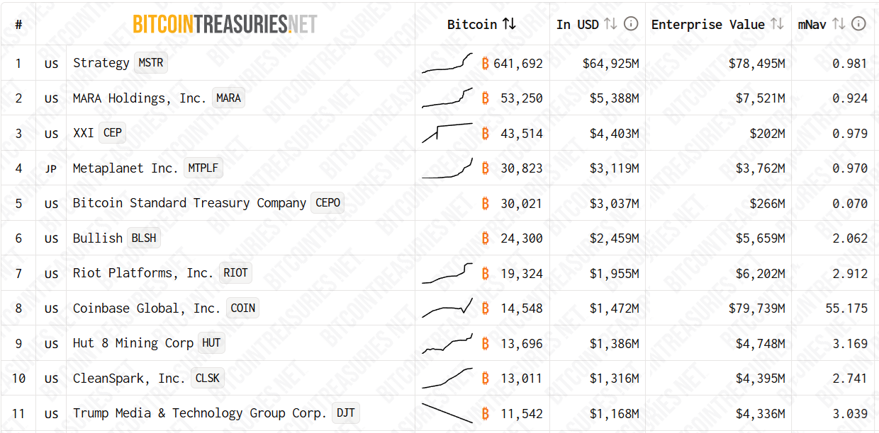 Companies pursuing Bitcoin reserve strategies, such as Strategy (MSTR) and Metaplanet (MTPLF), have previously been among the largest corporate buyers, especially when their shares traded at a premium to their underlying assets. The mNAV multiple captures this relationship, representing the value of the Bitcoin held relative to the company’s enterprise valuation.