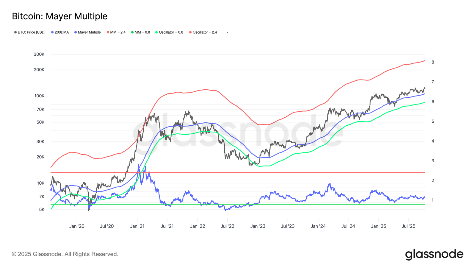 The latest readings from the Mayer Multiple revealed that even at $120,000, BTC/USD was far from overheated.