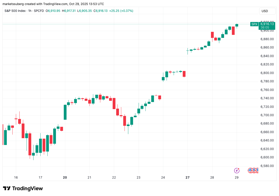 As crypto markets tracked sideways, the S&P 500 opened with a bang and a new all-time high of 6,914.