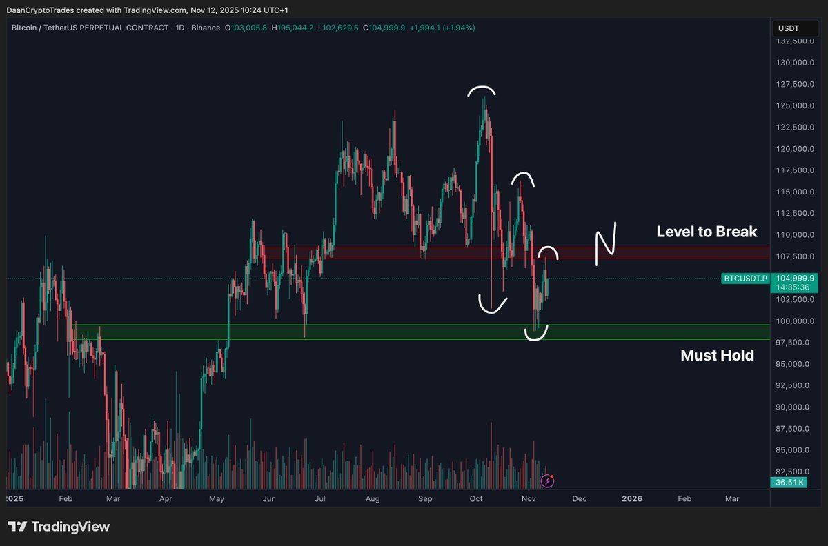 “Trending up on the lower timeframe. But needs to break that $107K area. If it can do so, it would turn this into a decent deviation and retake back into the range,” trader Daan Crypto Trades wrote in a response on X.