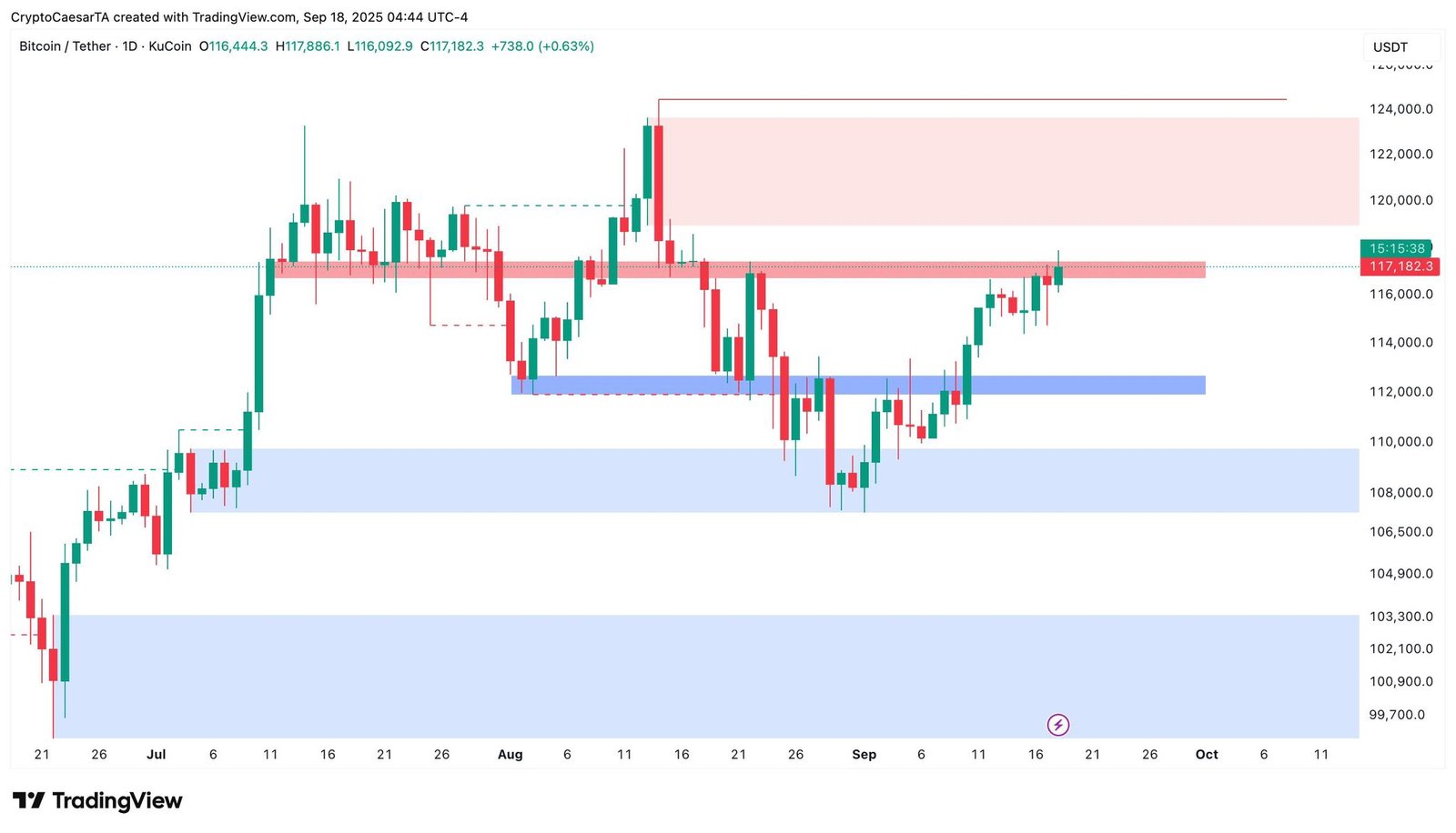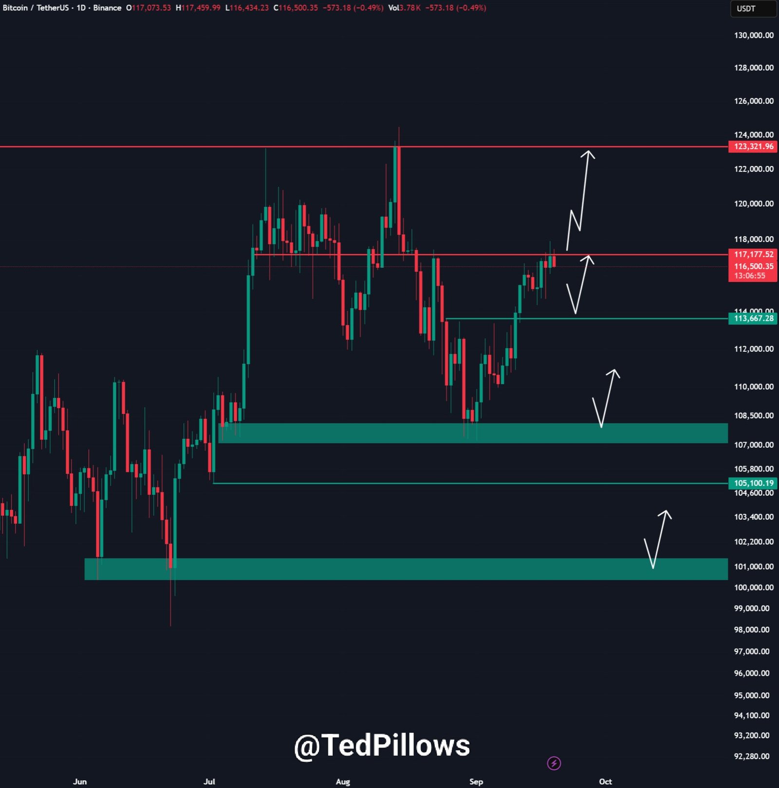 Bitcoin is one Daily Close above ~$117.2k away from preparing for a revisit of ~$120k+$BTC #Crypto #Bitcoin https://t.co/AMROY2kutn pic.twitter.com/EFi4CJTpOB