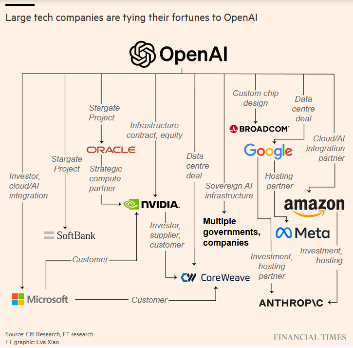 The move is creating an investment loop among a select group of AI companies. For instance, OpenAI has signed a $300 billion deal with Oracle.