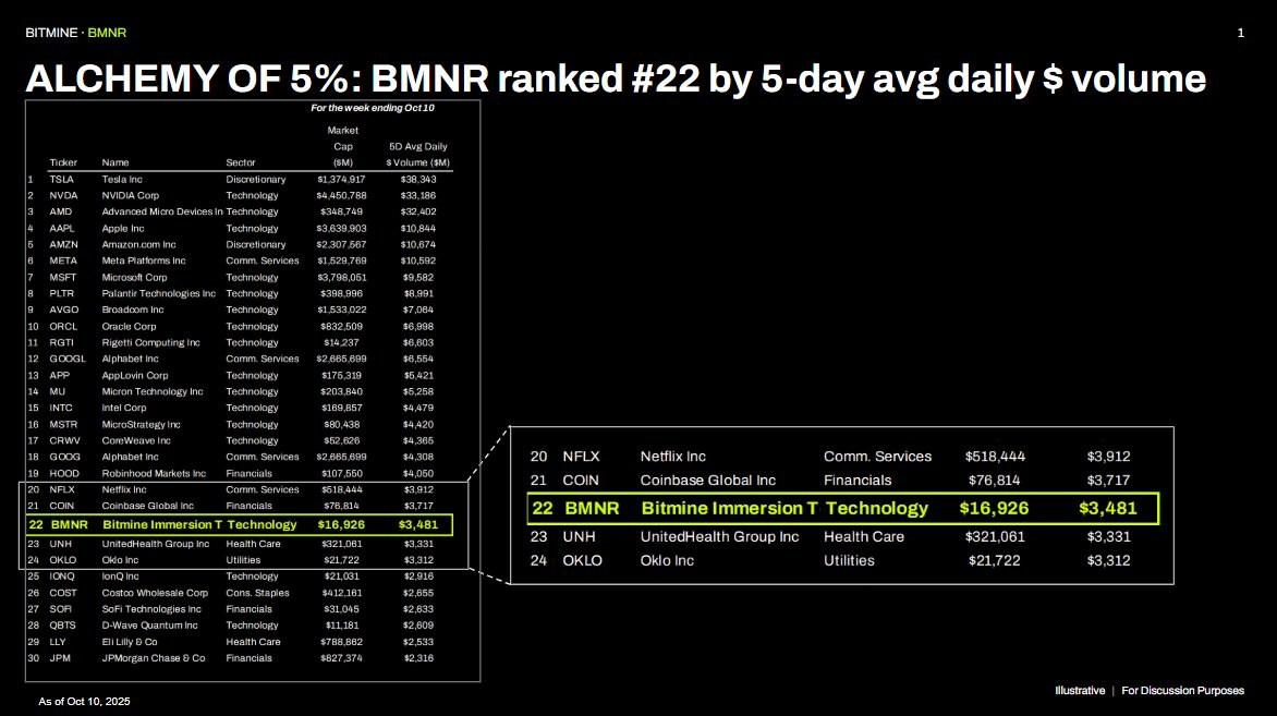BMNR was the 22nd most widely traded stock on US markets, based on its average five-day trading volume of over $3.5 billion, as of Friday.