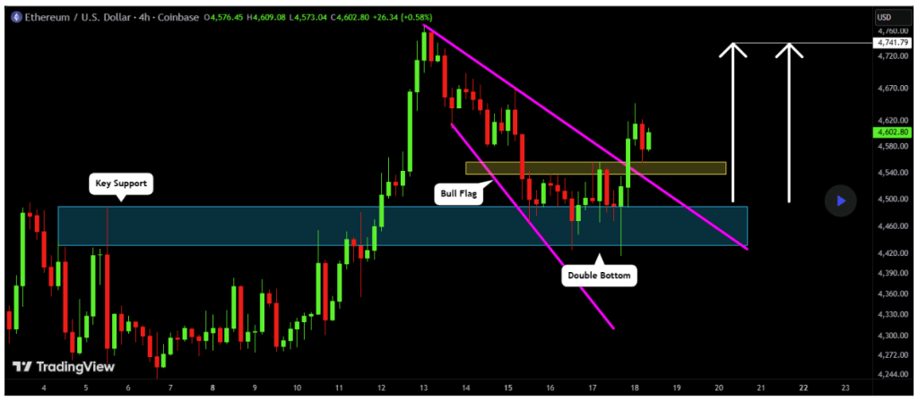One particularly notable observation came from VasilyTrader on the TradingView platform, who highlighted encouraging signals on Ethereum’s shorter-term charts. His analysis of the 4-hour candlestick timeframe suggested that the recent pullback has now given way to a bullish confirmation.