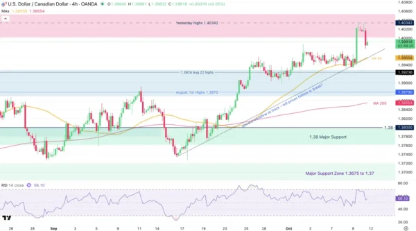 USD/CAD 4H Chart, October 10, 2025 – Source: TradingView