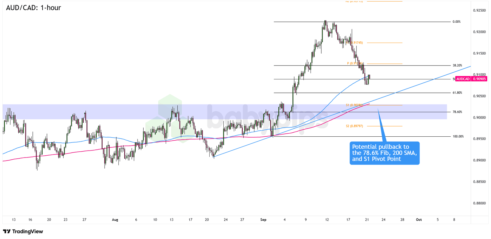If bulls can’t get traction here, sellers could step in and drag the pair toward the .9000 to .9050 zone. That area is packed with support from the 78.6% Fib, the 200 SMA, a trend line, and even a key resistance from back in July and August.