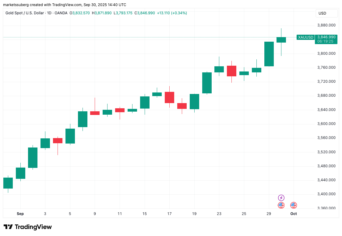 The main talking point, however, was Bitcoin versus gold as XAU/USD hit yet another all-time high of $3,871 per ounce.