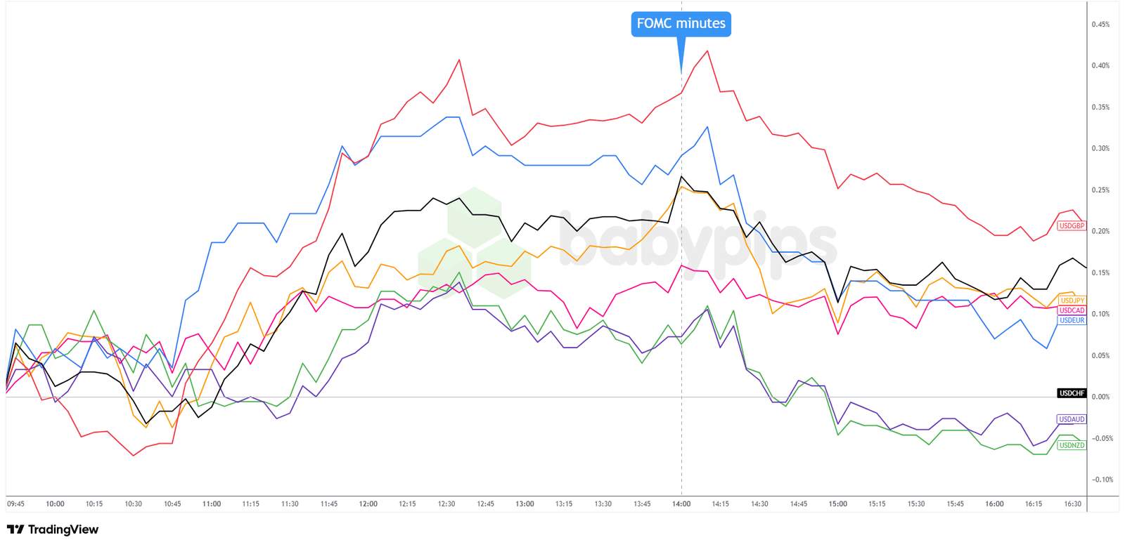 Overlay of USD vs. Major Currencies Chart by TradingView