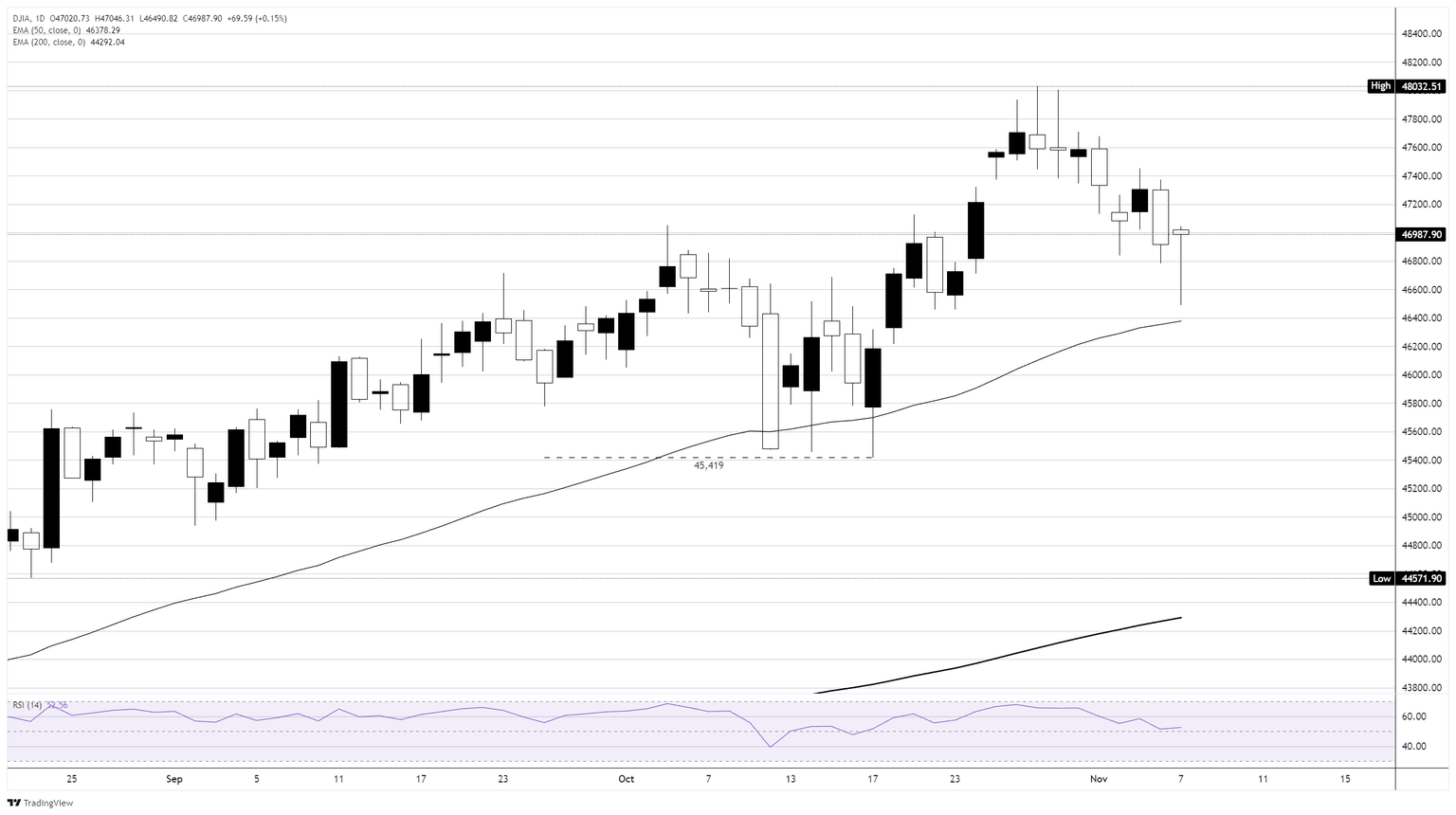 The Dow Jones Industrial Average (DJIA) took another leg lower on Friday, testing below the 46,800 level for the first time in almost three weeks before barely managing to squeeze back to flat for the day as an AI stock pullback and withering consumer survey results drag down both sides of the investment-consumption equation. Friday would have seen the release of the latest US Nonfarm Payrolls (NFP) jobs report, but the ongoing US government shutdown, which is officially the longest shutdown in US history, is crimping the flow of official data, leaving investors to grapple with volatile private data, and putting deep question marks where key inflation and employment numbers should be.