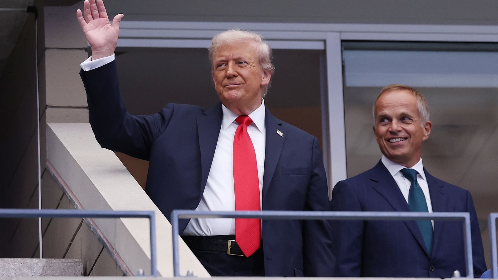 (L-R) U.S. President Donald Trump and Rolex CEO Jean-Frederic Dufour arrive in the Rolex suite prior to the Men’s Singles Final match between Jannik Sinner of Italy and Carlos Alcaraz of Spain on Day Fifteen of the 2025 US Open at USTA Billie Jean King National Tennis Center on September 07, 2025 in New York City.