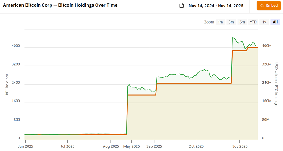 Trump is at least putting his philosophy into practice. American Bitcoin, the mining company he leads, which went public earlier this year through a reverse merger with Gryphon Digital Mining, added more than 3,000 BTC in the third quarter, bringing its total holdings to over 4,000 BTC.