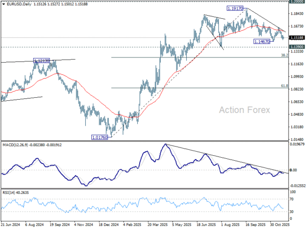 Daily Pivots: (S1) 1.1485; (P) 1.1519; (R1) 1.1547; More…