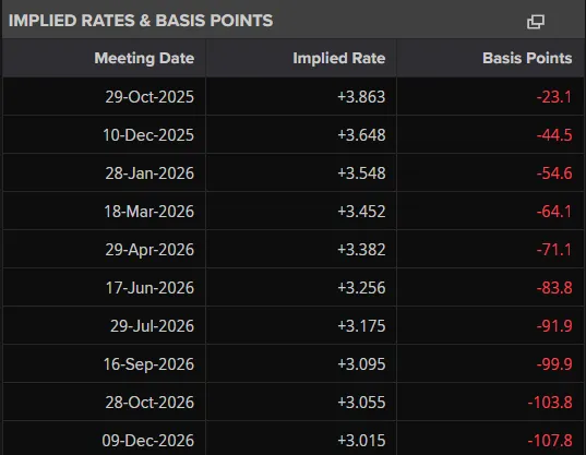 As things stand, markets are still pricing in around 44.5 bps of rate cuts through December 2025.
