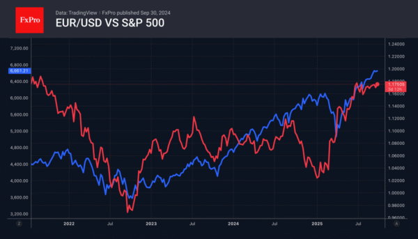 As long as US stock indices continue to climb and the Fed lowers rates amid a cooling labour market, the chances of euro growth will increase. The main risks are a pleasant surprise from US employment in September and consolidation of the S&P 500 against the backdrop of seasonal volatility in October. A shutdown could be the reason for this.