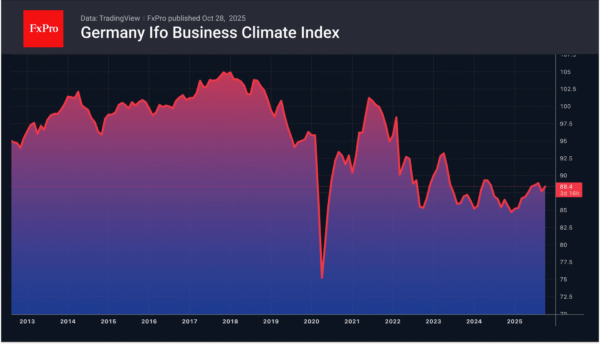 Some Bloomberg experts predict a rate hike in 2026. This would require an improvement in the European economy. Pleasant surprises from eurozone business activity and German business sentiment indicate positive GDP growth in the fourth quarter. In July-September, gross domestic product most likely grew by 0.1%.