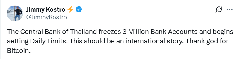 Jimmy Kostro of the Bitcoin Learning Center in Thailand posted: