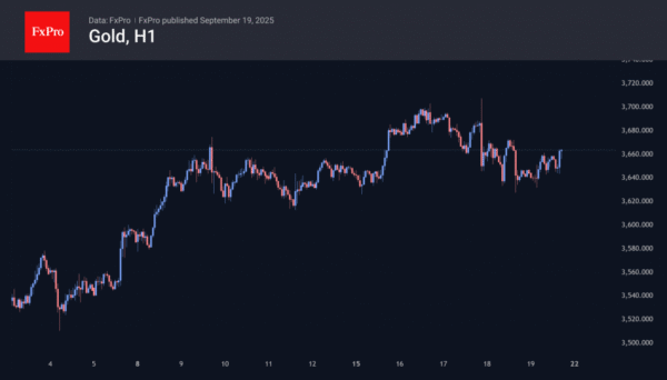 At the same time, however, we note that following the Fed’s decision, the dollar began to rise, and gold began to fall, closing the week near its starting level of $3,650, in contrast to new record highs for stock indices. Markets are temporarily selling gold and buying dollars to buy US stocks.