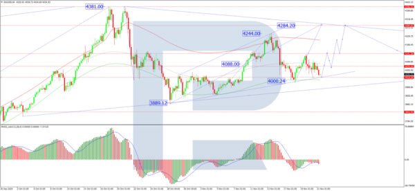 On the H4 chart, XAU/USD is forming a consolidation range around 4,076 USD. The pair may first extend this range downward toward 4,019 USD before resuming an upward move to 4,141 USD. A decisive break above this level would open the path for a fifth wave of growth targeting 4,285 USD. The MACD indicator supports this view, with its signal line below zero, suggesting the current correction has further to run before the next leg higher.