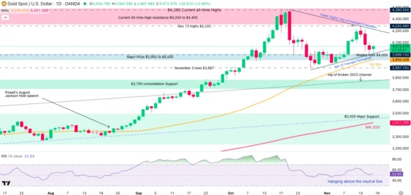 Gold (XAU) Daily Chart, November 18, 2025 – Source: TradingView