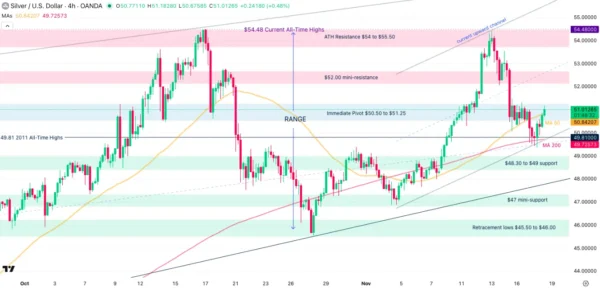 Silver (XAG) 4H Chart, November 18, 2025 – Source: TradingView