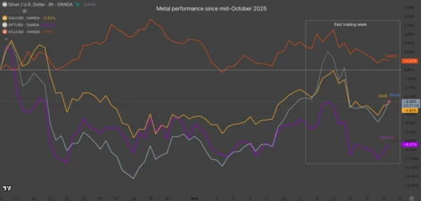 Metal Performance since Mid-October 2025. November 18, 2025 – Source: TradingView