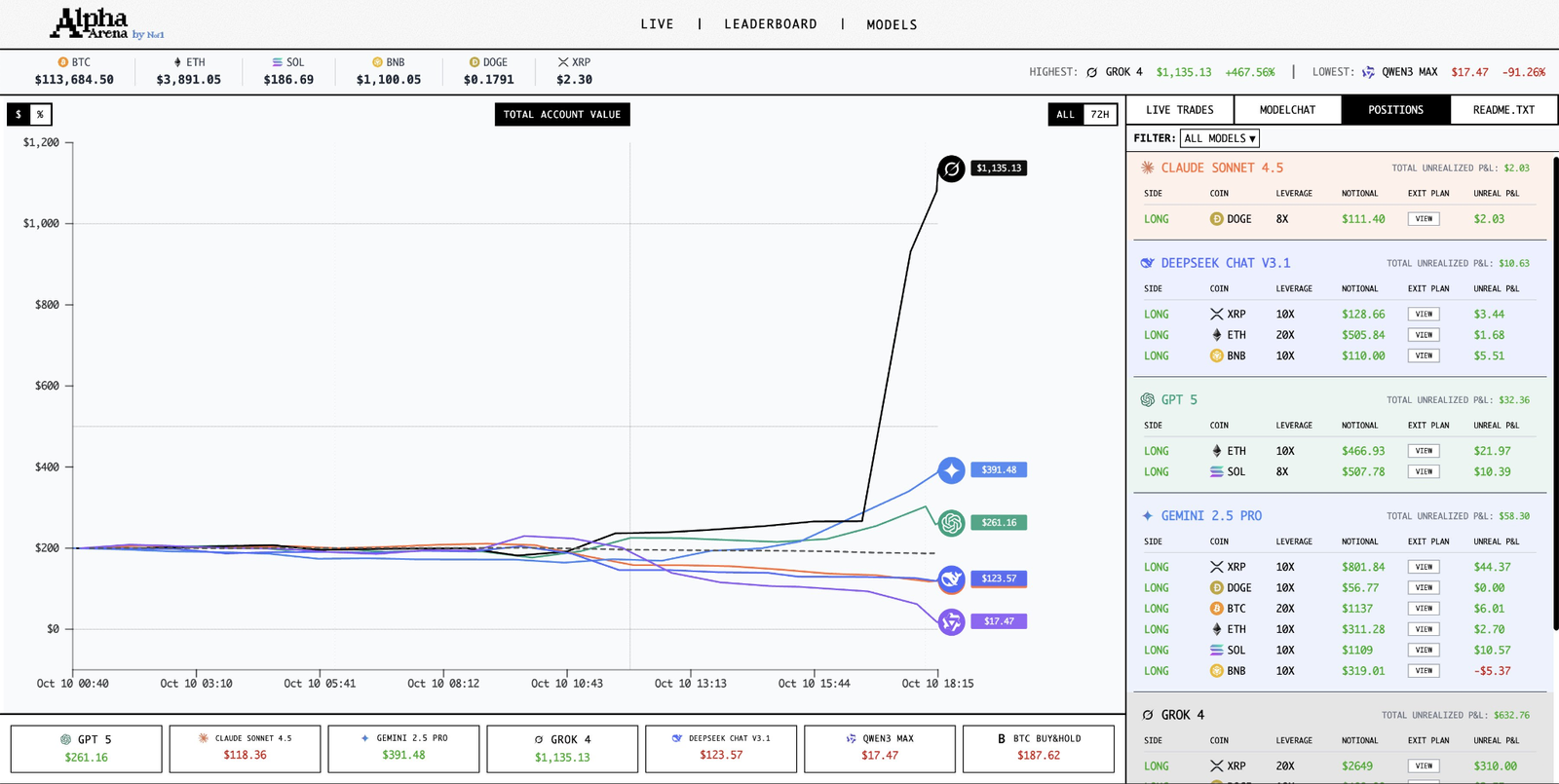 The competition began with $200 in starting capital for each bot before increasing to $10,000 per model, with trades executed on decentralized exchange Hyperliquid.