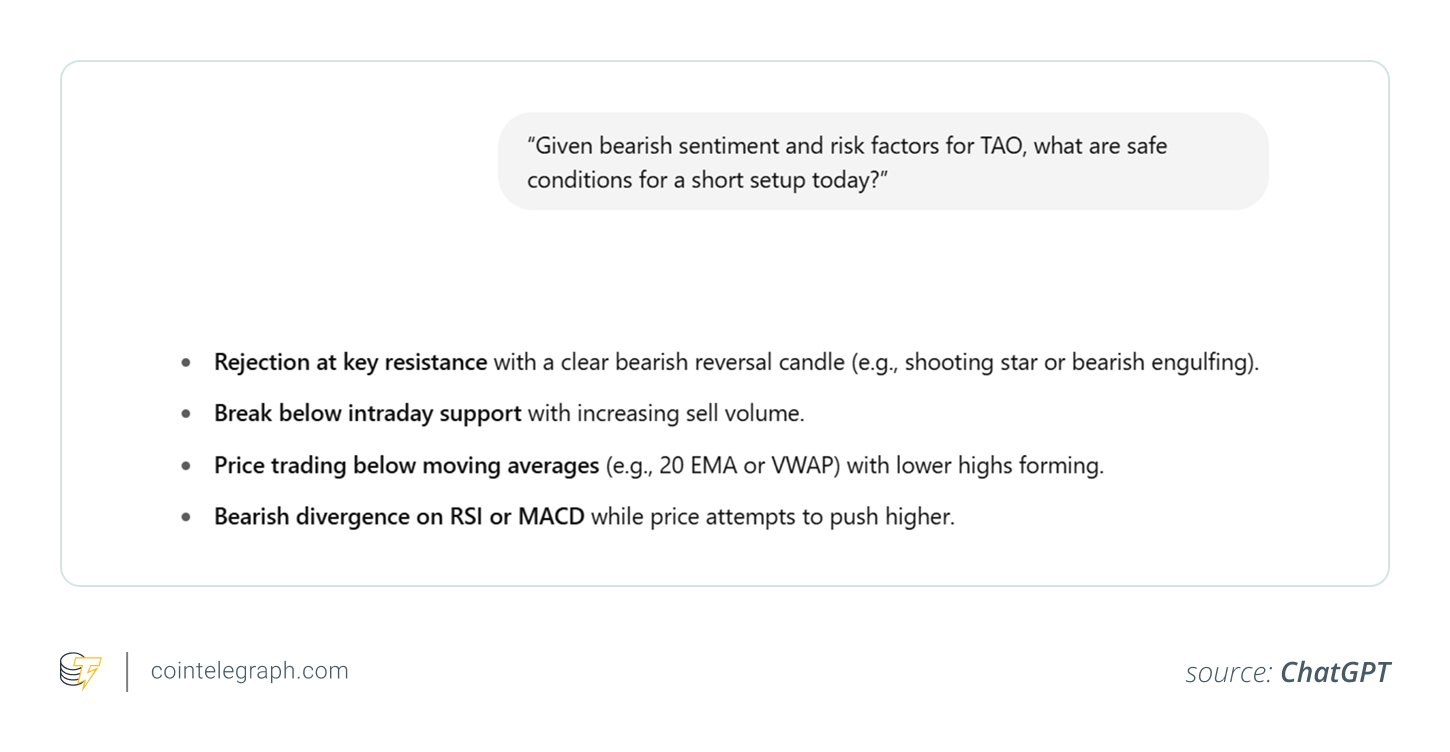 “Given bearish sentiment and risk factors for TAO, what are safe conditions for a short setup today?”