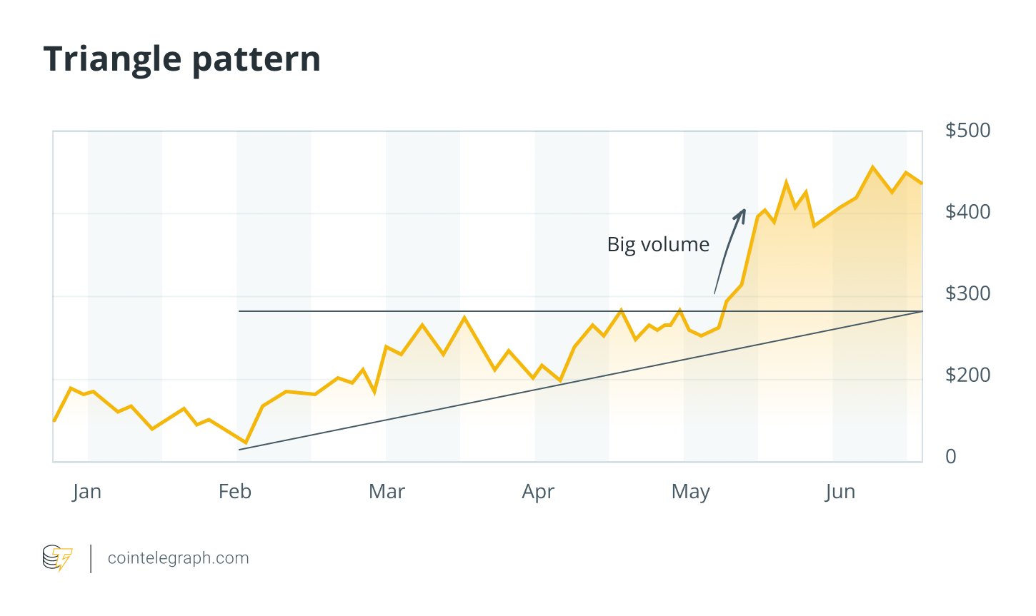 Example: During periods of market uncertainty, asset charts often display triangle formations. In early 2025, Ether’s (ETH) price action formed a symmetrical triangle amid uncertainty surrounding decentralized finance (DeFi) regulations. The price later broke out bullishly as regulatory clarity improved.
