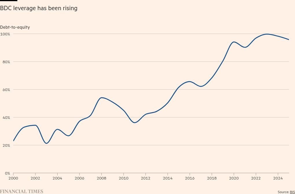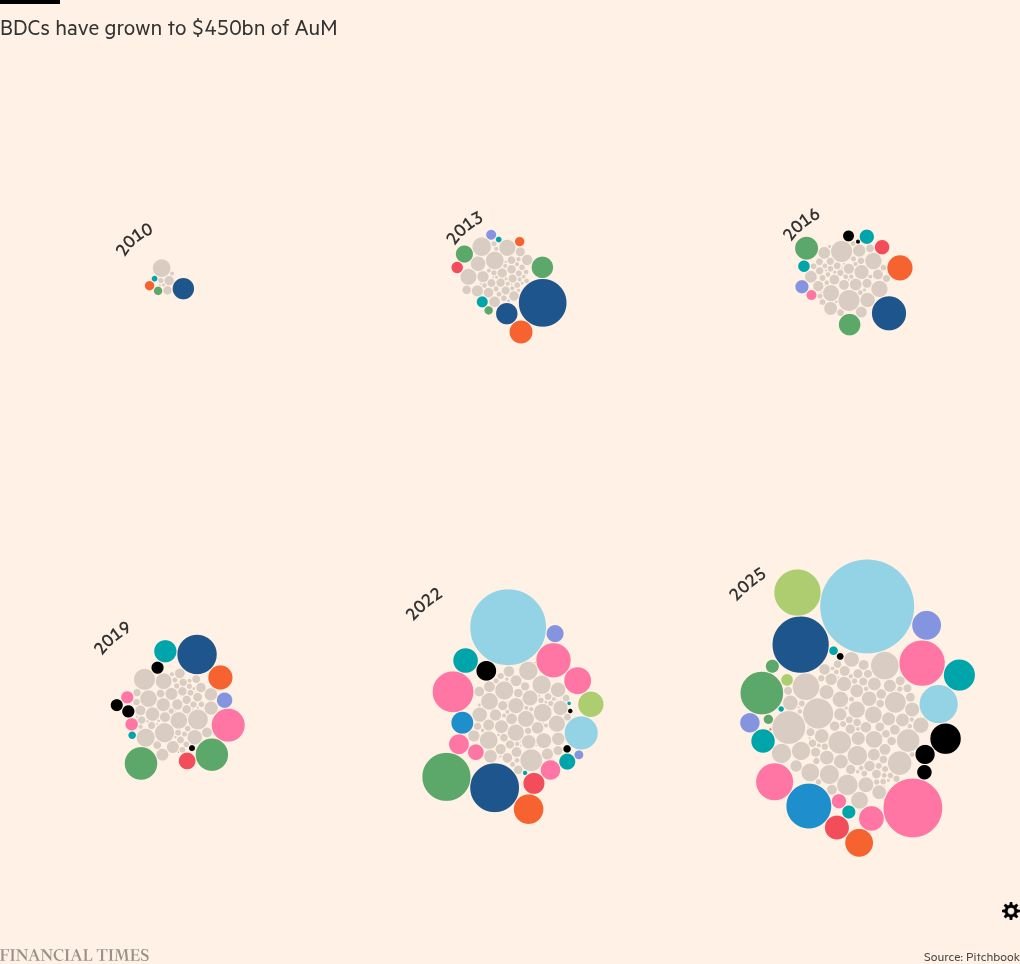 BDCs are basically vehicles set up to provide finance to mid-sized American companies, and have about $478bn in assets under management, according to SOLVE. The BIS estimates they are now responsible for a quarter of “direct lending” in the US — when an investment fund makes a loan to a company, rather than a bank.