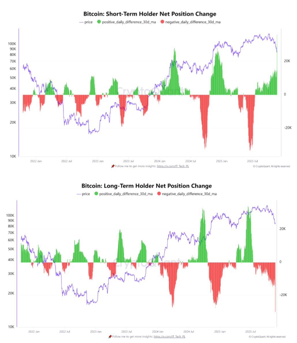 The post examined the rolling 30-day position change among LTH and STH entities, defined as those hodling for over and under 155 days, respectively.