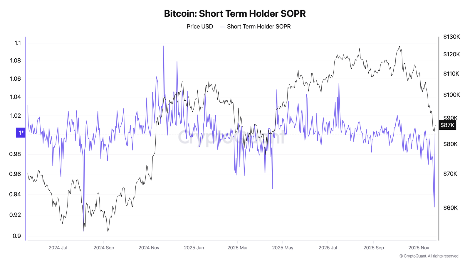 The cohort’s spent output profit ratio (SOPR) — the proportion of coins moving onchain in profit or loss — reached 15-month lows near 0.927 over the weekend.