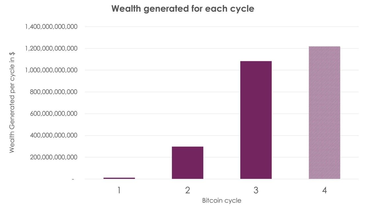 On the other hand, assuming that we can consider the rise of the fourth halving cycle to be over, which no one can deny or affirm with certainty, the total wealth generated so far is greater than in other cycles, confirming, if confirmation were needed, that Bitcoin, understood both as a network and as an asset in itself, has generated more wealth than any other type of investment in just 15 years of history.