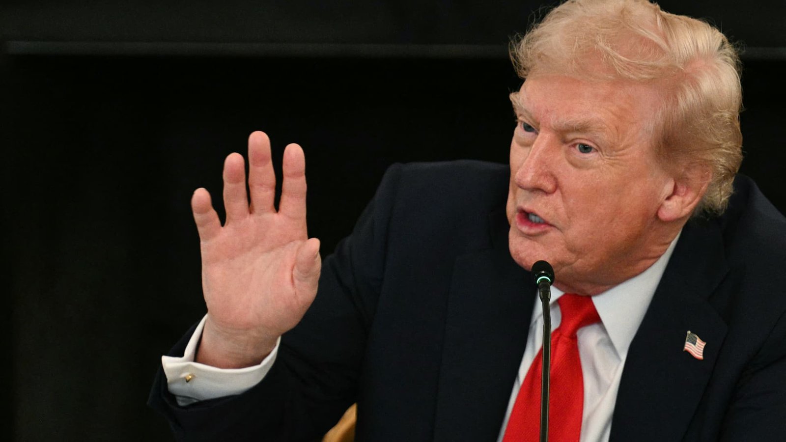 US President Donald Trump speaks during a roundtable about “Antifa,” an anti-fascist movement he designated a domestic “terrorist organization” in the State Dining Room of the White House in Washington, DC, on Oct. 8, 2025.