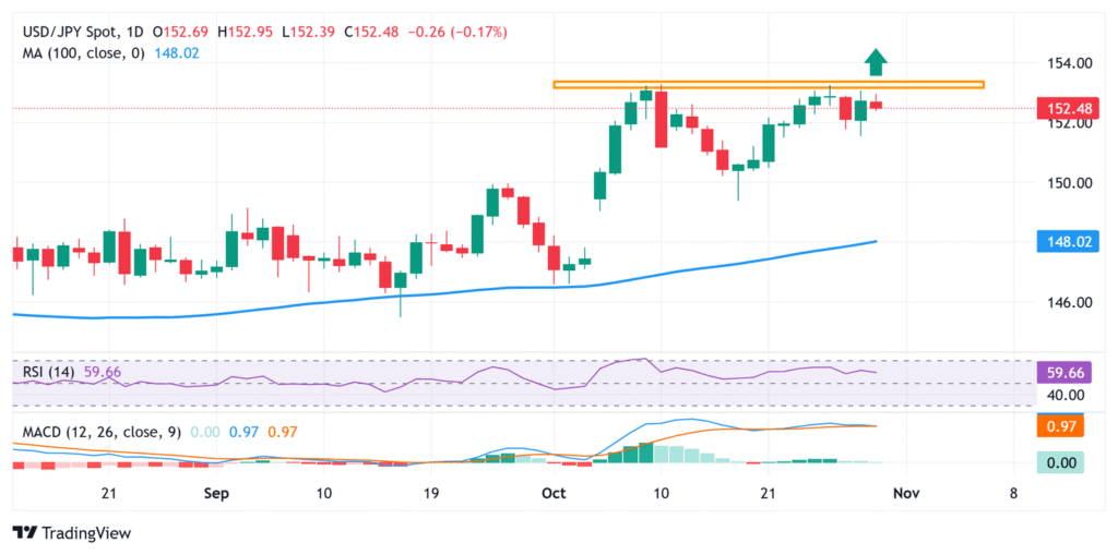 On the flip side, the 153.00 round figure now seems to act as an immediate hurdle ahead of the 153.25-153.30 region, above which the USD/JPY pair could aim to reclaim the 154.00 mark. The momentum could extend further towards the next relevant resistance near mid-154.00s en route to the 154.75-154.80 region and the 155.00 psychological mark.