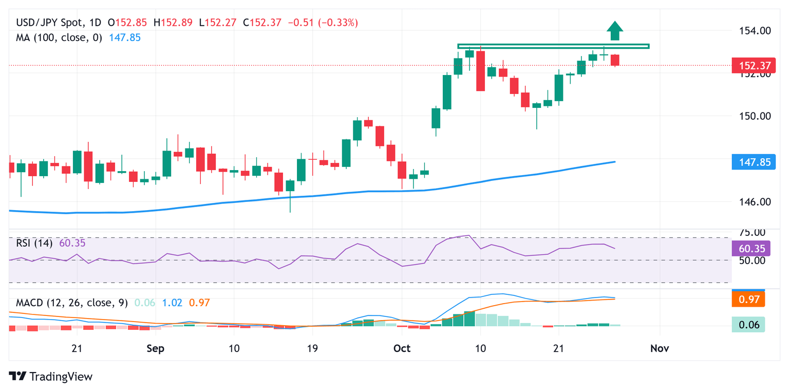 On the flip side, the 152.90-153.00 region now seems to act as an immediate hurdle ahead of the 153.25-153.30 zone, above which the USD/JPY pair could aim towards reclaiming the 154.00 round figure. The momentum could extend further towards the next relevant resistance near mid-154.00s en route to the 154.75-154.80 region and the 155.00 psychological mark.