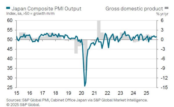 Japan’s PMI Services was finalized at 53.1 in October, slightly below September’s 53.3. PMI Composite edged up to 51.5 from 51.3 as strength in services offset continued weakness in manufacturing.