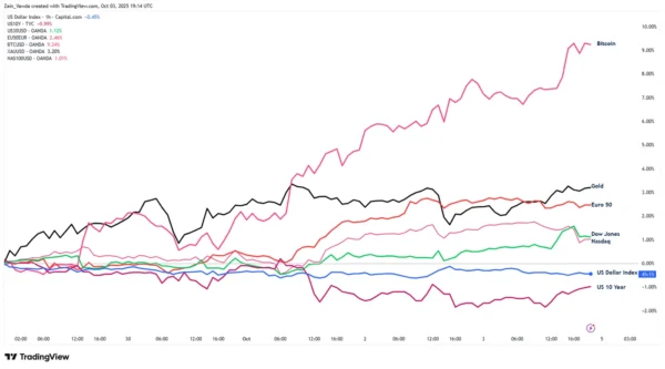 Despite this, the Federal Reserve (Fed) will still release the minutes from its September meeting (on Wednesday), where they cut rates by 25 basis points. We will also get the August consumer credit data and the initial October consumer sentiment index from the University of Michigan.