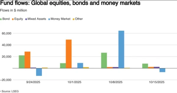 Despite the mixed week for US and global equity markets, equity funds attracted inflows for a fourth straight week through October 15, as dovish comments from U.S. Federal Reserve Chair Jerome Powell reinforced expectations that the central bank will cut interest rates at its meeting later this month.