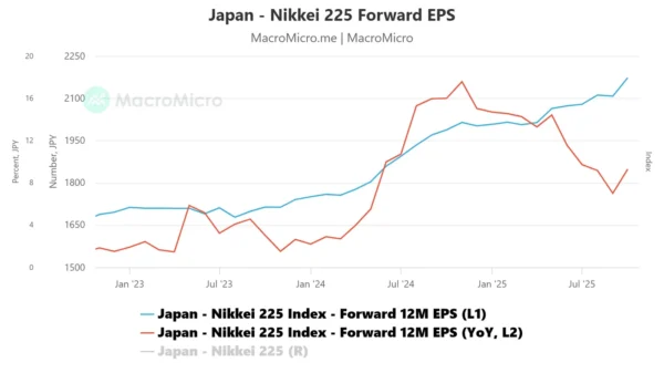 Fig. 1: Nikkei 225 forward 12-month forward EPS growth as of 23 Oct 2025 (Source: MacroMicro)