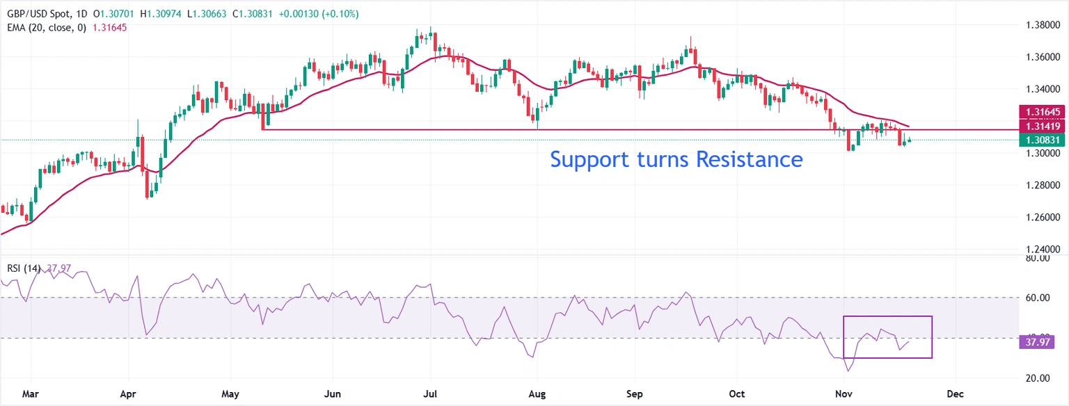 GBP/USD Price Forecast: Holds gains near 1.3100, but bearish momentum persists below 100-day EMA
