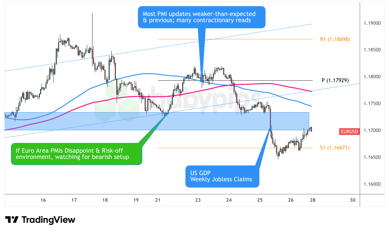 With the PMI data sending mixed signals and risk sentiment fluctuating, key technical levels like the 1.1800 and 1.1750 levels on EUR/USD and pivot points across all pairs played crucial roles in defining entry and exit points.