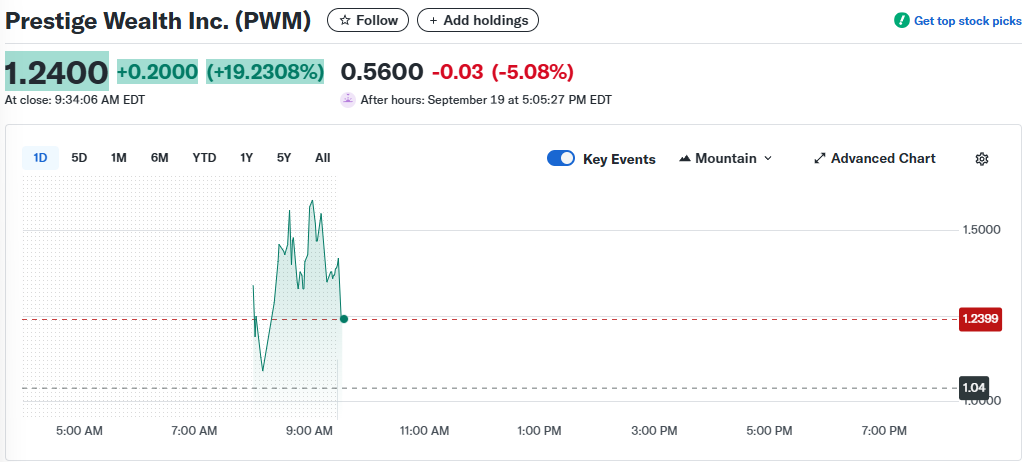 The pivot to a Tether gold treasury has benefited Prestige Wealth’s stock price, which rose 19% on Friday after the announcement.