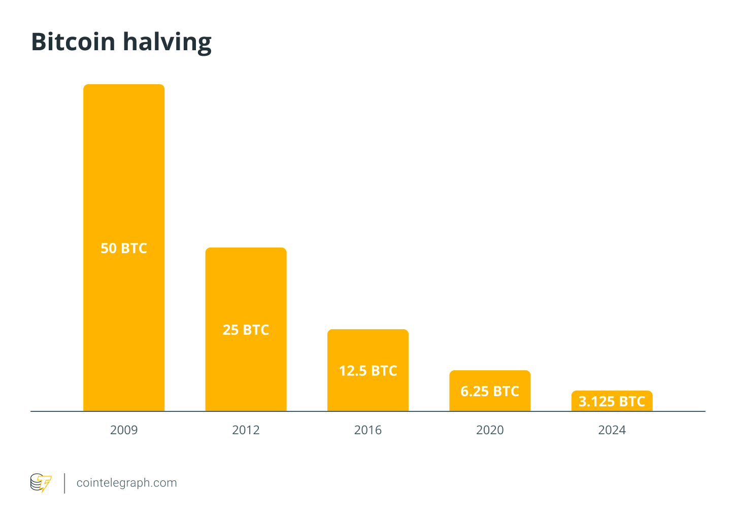 When Bitcoin’s fourth halving took place in April 2024, the block reward fell from 6.25 BTC to 3.125 BTC.