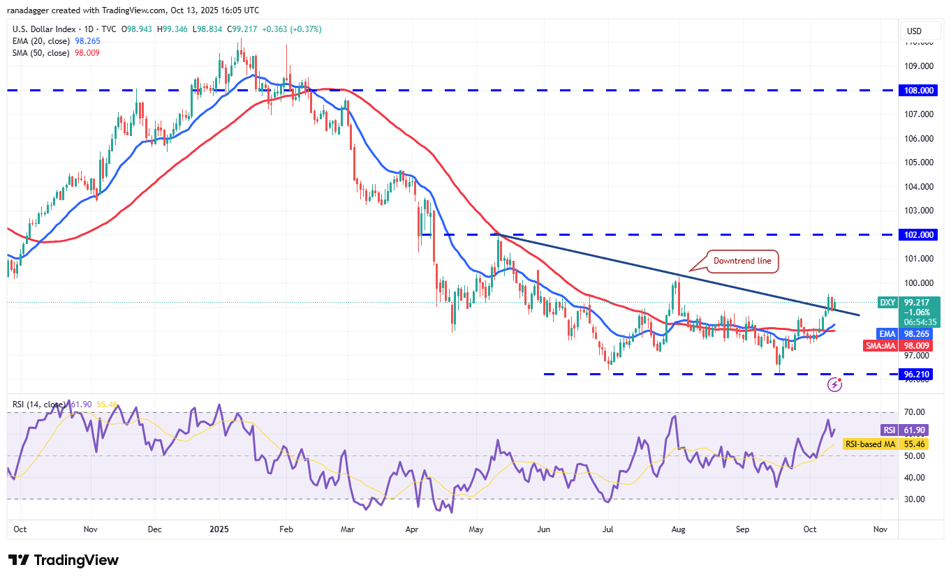 A strong bounce off the 20-day EMA increases the possibility of a break above 100.50. The index could then climb to the 102 level.