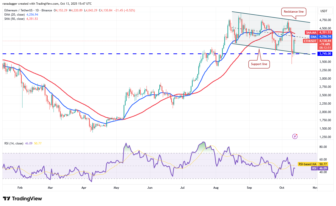 Ether price climbed back into the channel on Sunday, indicating solid demand at lower levels. If the price turns down sharply from the moving averages, the bears will again strive to pull the ETH/USDT pair below the channel. If they succeed, it suggests that the pair may have topped out in the near term.