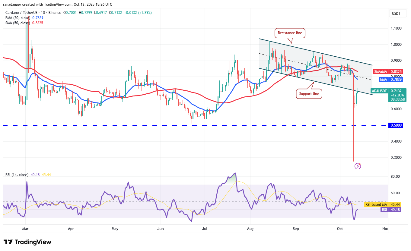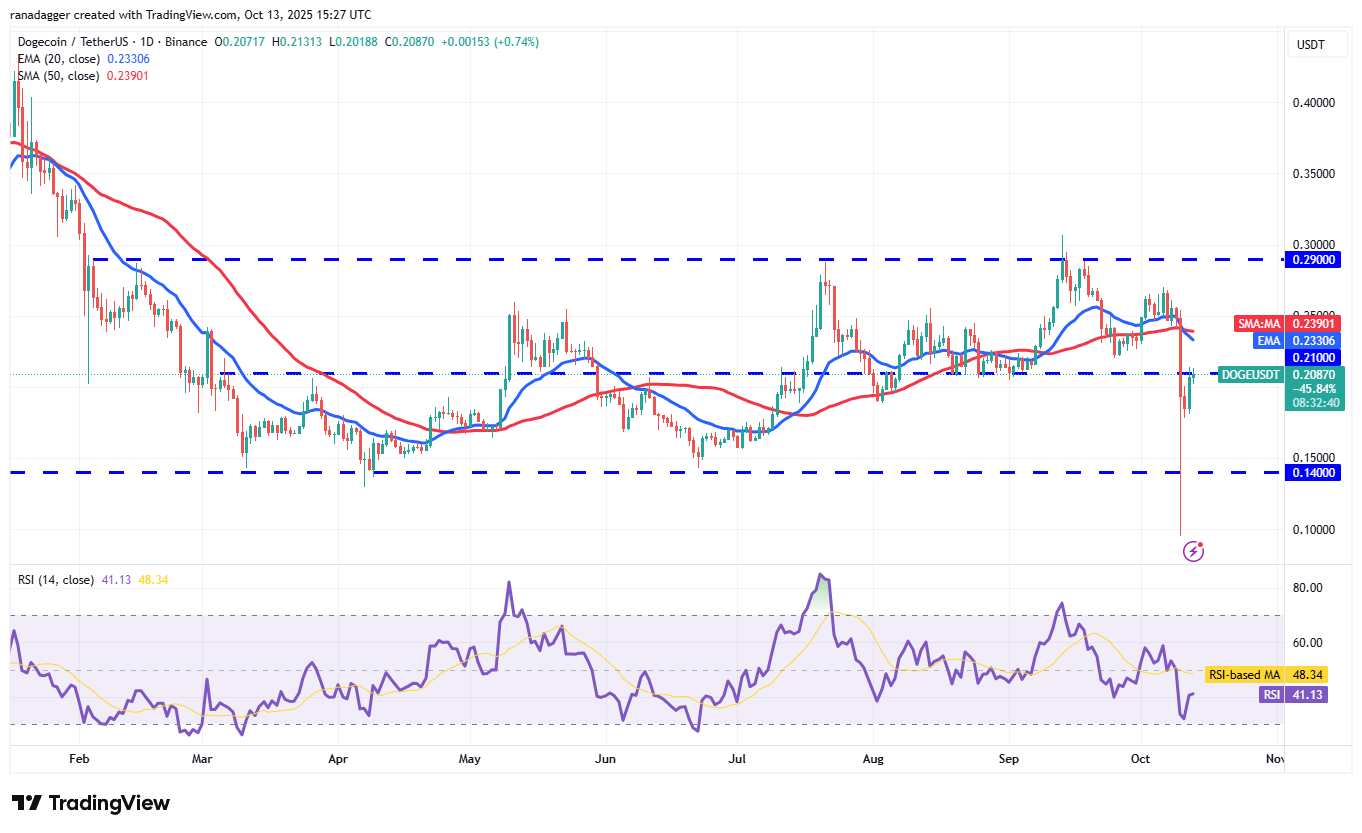 Dogecoin price recovered sharply and re-entered the large $0.14 to $0.29 range. The bulls will try to push the price to the 20-day EMA ($0.23), which could attract sellers. If the price falls below the 20-day EMA, the DOGE/USDT pair could decline to $0.18 and then to $0.16.